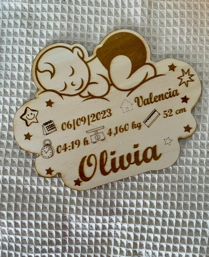 Un natalicio en madera es un recuerdo precioso para dar la bienvenida al nuevo miembro de la familia. Una pieza única, delicada y llena de significado, perfecta para decorar su habitación o regalar a esos papis que quieren guardar cada detalle de este momento tan especial.